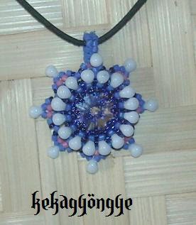 Mézesmama mintája alapján készült,egyik havernőm azt mondta fűzzél nekem valami kéket,de ne legyen nagy.Ez a kék delica elég érdekes színű ha nem tetszik a csajszlinak pont van egy ilyen színű bluzom ha meg tetszik neki megfűzöm még egyszer.